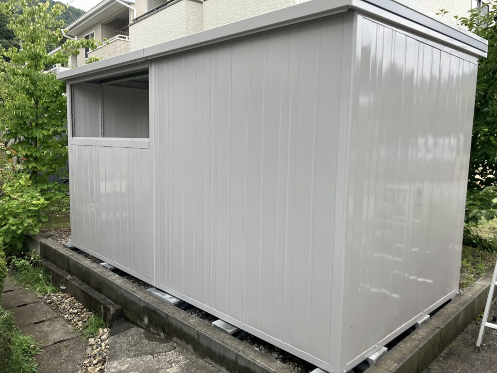 工事内容:庭をスッキリさせ、生活動線を改善したく物置設置のご依頼いただきました。