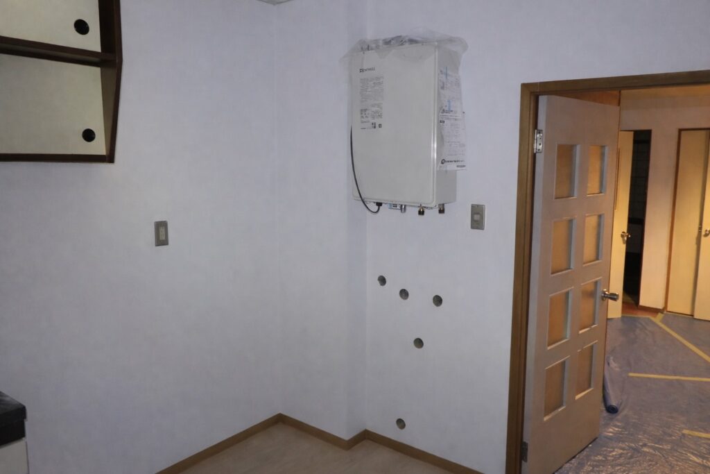 工事内容:古い設備を一新して使い勝手を向上させるリノベーション工事を行いました。その中のコア抜きやFF給湯器設置、水周りの設備工事を行いました。